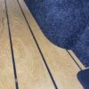The oak floor must be bonded to prevent the wood warping, although easy in theory, achieving a perfect finish can require a certain level of attention to detail. Firstly, dry fit your floor, they are designed to fit perfectly snug after ply lining and carpet, however if any trimming is required this is the time. Secondly, we recommend filling the van rib gaps with 9mm ply for a better base support, however this is not imperative. When fitting apply an even amount of adhesive onto the ribs, we recommend soudal fix all turbo adhesive. Once the floor has been laid, apply even pressure throughout so the floor is in contact with all the ribs. Finally, the floor must be weighed down with significant weight, ensuring all the floor is in contact with the ribs and bond, this is most important over the join. An alternative to weight can be using acrow props, just ensure you are applying pressure evenly and inline with the van ceiling ribs to avoid damaging any headliners