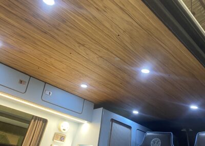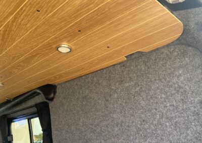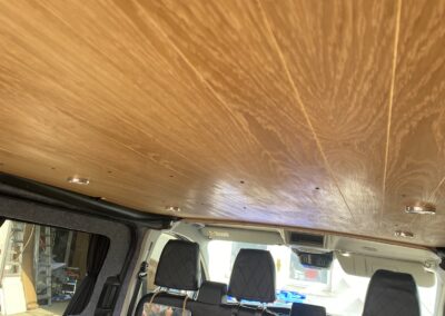 There are various ways to install your headliner, we recommend seeking advise from professional conversion companies to achieve best results. Although there are ways to achieve a seamless finish, for easiest installation we recommend simply screwing. Firstly, we recommend fitting a standard ply headliner as a backing board, the oak headliners are joined vertically in the length, this allows for a base to fit and gives the option to bond. If you chose to fit without a backing boards, cut your 6mm ply strips to length, then countersink screw to the ceiling bracing supports. Next, offer the headliner up, make adjustments and trim if necessary, then simply screw into place. Use small black pan heads; for symmetry screw in the centre of the slats and horizontally across perfectly straight.