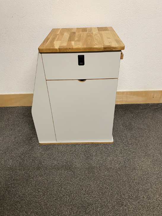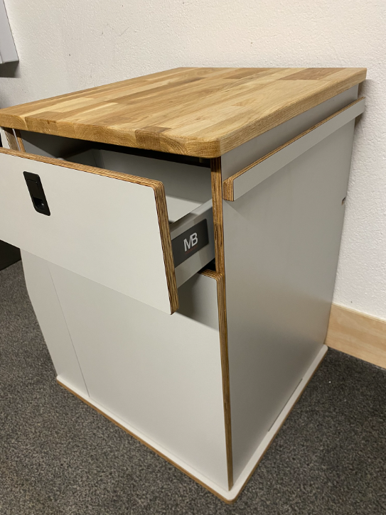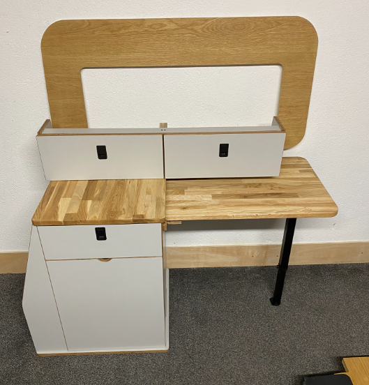 - Solid oak work top and folding table