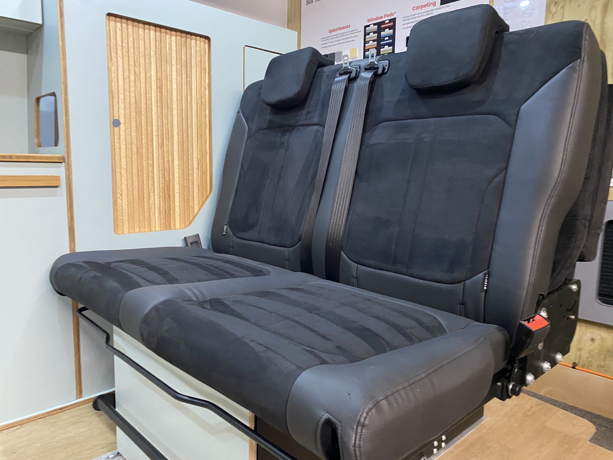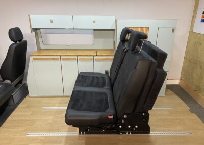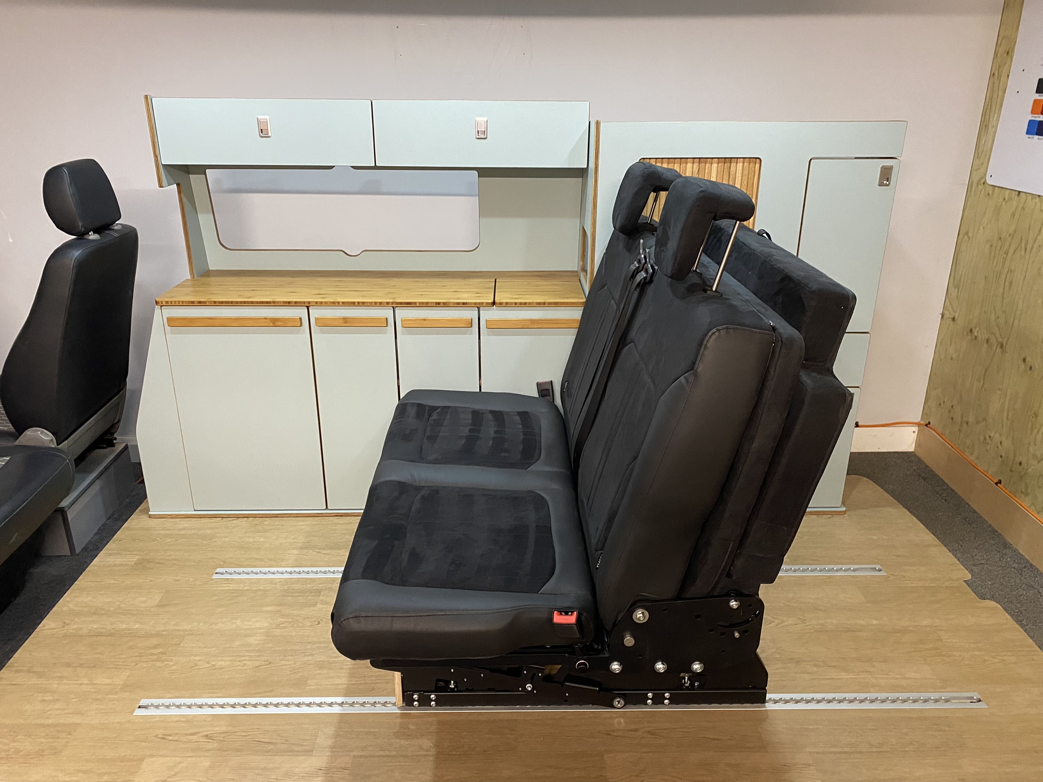 Transform your van into a versatile, comfortable living space with the Mobiframe UK Camper Bed / Bench for Rail System Isofix, SAF42 (2-seater). Designed for ultimate flexibility, these beds feature a sliding base option, allowing you to easily adjust seat position and configure your layout for both travel and relaxation.