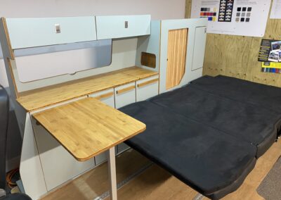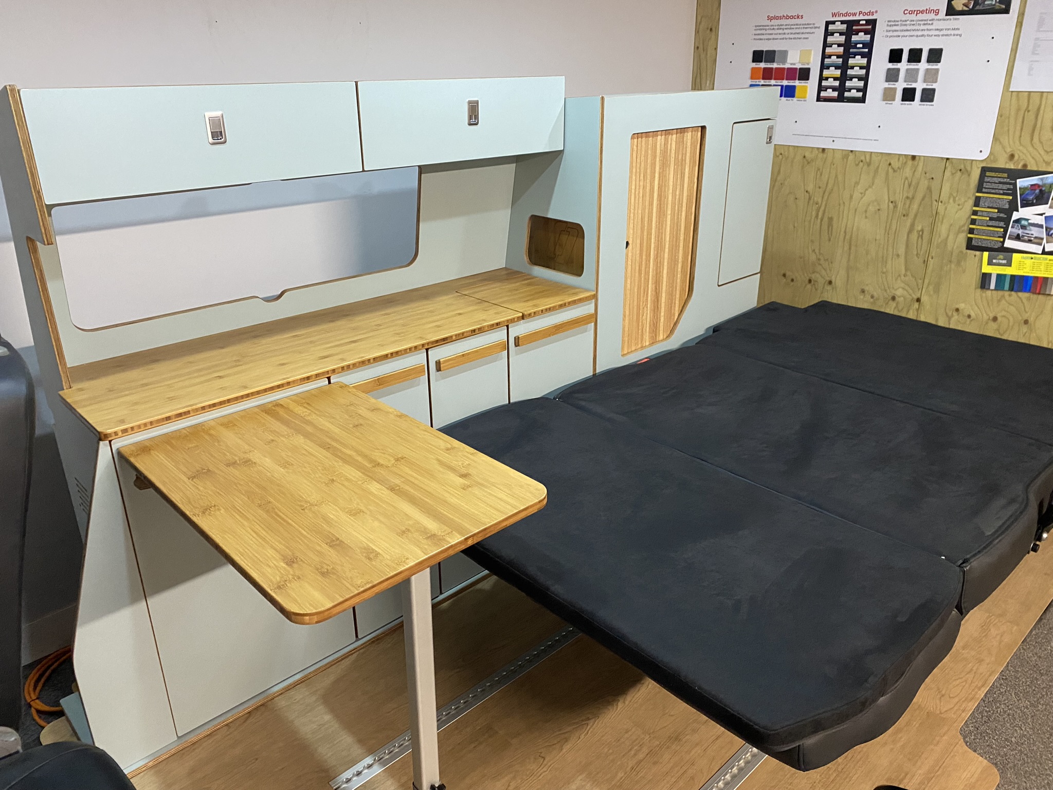 To maximize your space and functionality, pair your new floor with our Mobiframe-Specific Kitchen Units. These kitchens are designed to work in perfect harmony with the Mobiframe bed bench, ensuring a flush fit and easy configuration.