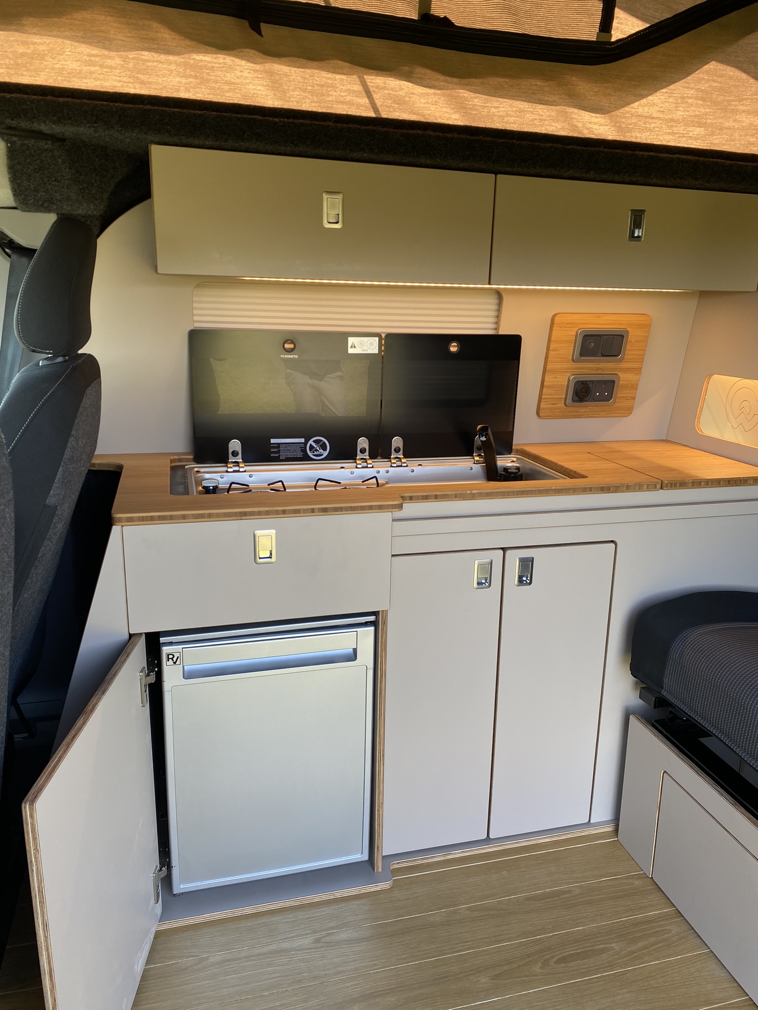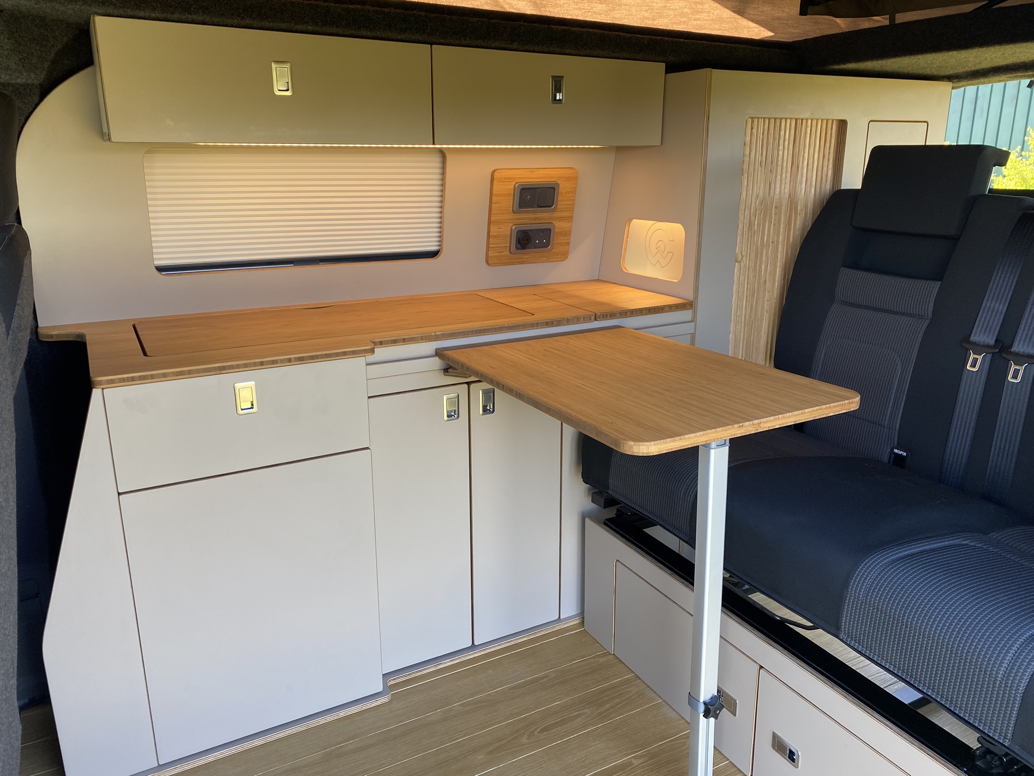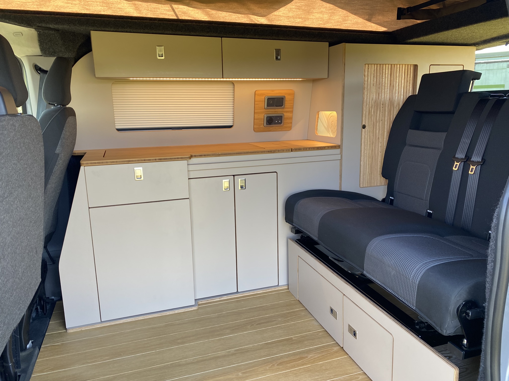 Building a campervan can be a huge project, but our VW T7/ New Ford transit custom furniture kit is here to make it simple. We've done the hard work for you. Every piece is pre-scribed to match your van's exact contours, which means no more tedious measuring or cutting. The kit fits perfectly, saving you countless hours and minimizing mistakes.